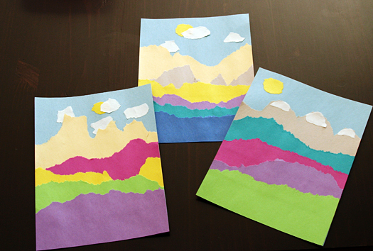Make and takes shares a very cute use for construction paper and glue showing how kids can make landscape portraits.